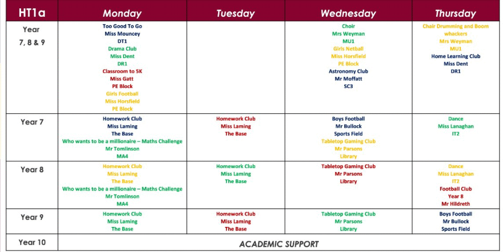 Our HT1a Enrichment Timetable is running till the end of term!